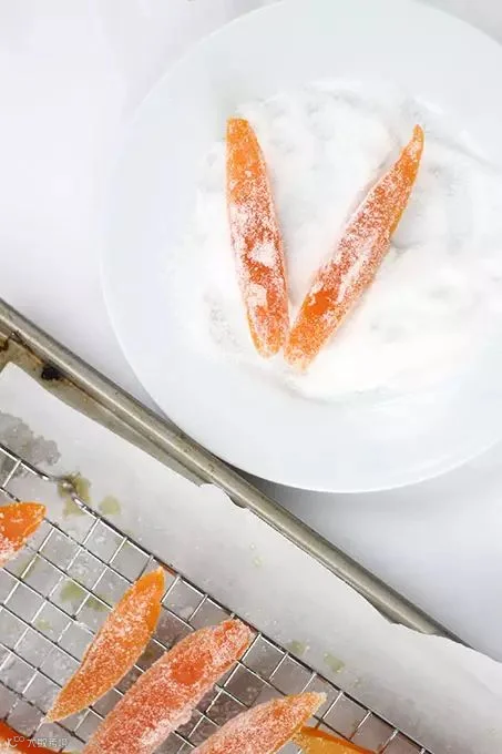 捞起沾上一些白糖,爽口润肺的柚子皮糖就做成啦!