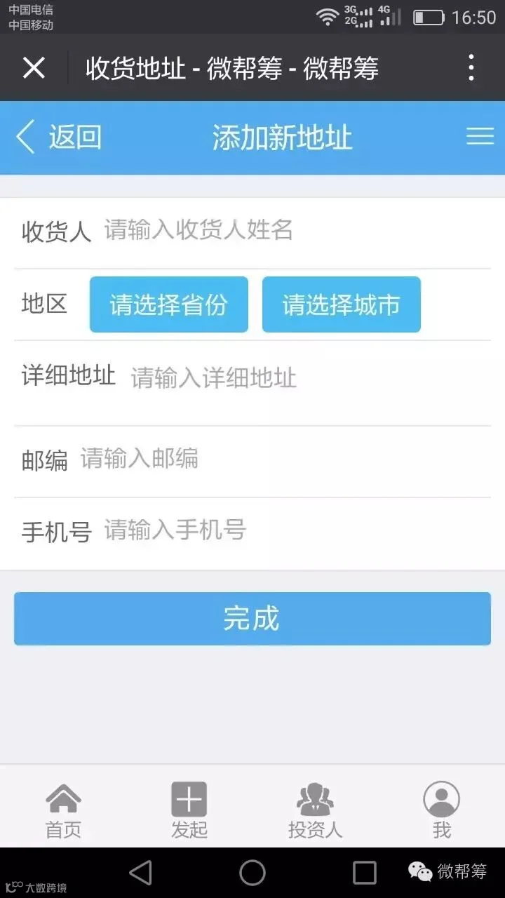 第三步:在“微帮筹”(weipinhui88)公众号提交收货地址及个人其他信息