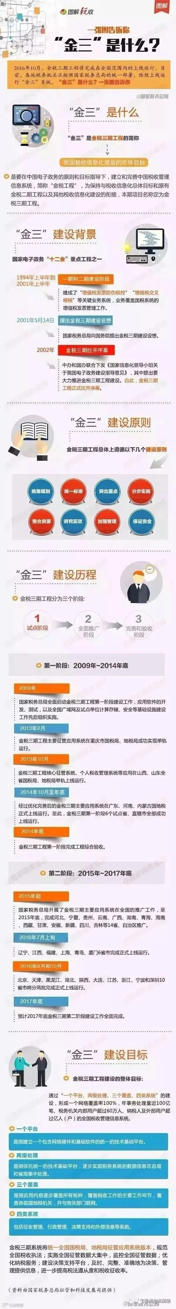 2016年10月,金税三期工程将完成在全国范围内的上线运行。目前,各地税务机构正按照国家税务总局的统一部署,陆续上线运行“金三”系统。