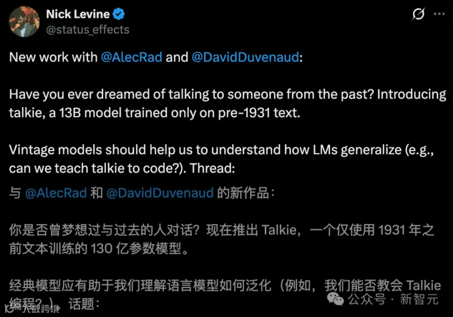 就在今天,GPT之父Alec Radford带队发布了震撼全网的「talkie」——