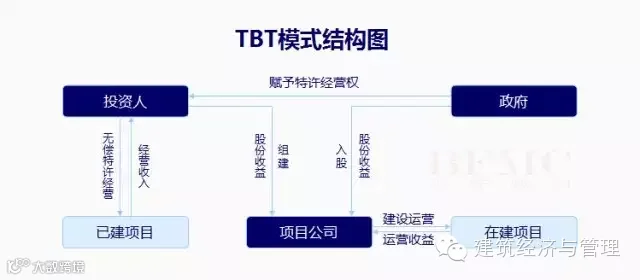 TBT(Transfer-Build-Transfer)就是将TOT与BOT融资方式组合起来,以BOT为主的一种融资模式。在TBT模式中,TOT的实施是辅助性的,采用它主要是为了促成BOT.
