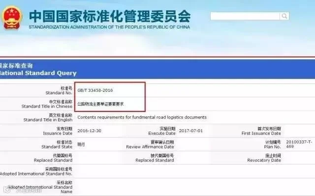 四项物流国家标准于2017年7月1日正式实施。