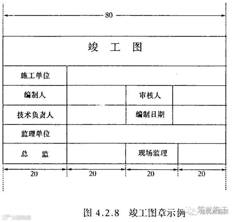 竣工图章应使用不褪色的红印泥,应盖在图标栏上方空白处。(图章示例见下图2)