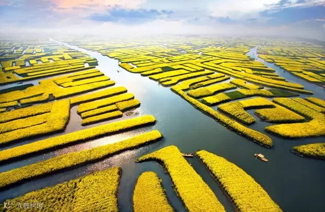 “河有万湾多碧水,田无一垛不黄花”。每年的清明前后,在辽阔的水面上,千姿百态的垛田形成了上千个湖中小岛,岛上开满金灿灿的油菜花,在水面上形成一片金黄色“花海”,一望无际,令人叹为观止。