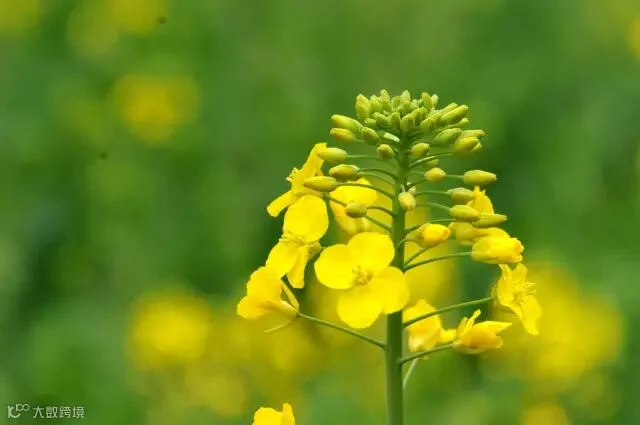 金黄的菜花、绯红的桃花、