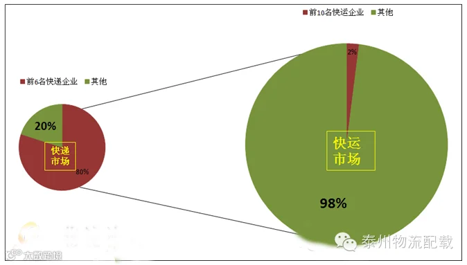 相对于快递市场,快运市场市场容量相对较大,竞争比价激烈,市场格局尚不明朗,快递市场则已出现“寡头”现象。