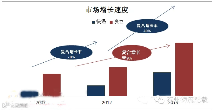 近几年,受电商快速发展的影响,快递市场容量发展速度远远高于快运市场的发展速度。