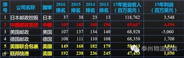 2)中国邮政凭借邮储金融业务再次逆袭,从去年第四位升至今年第二位,但与美国邮政和德国邮政的营收三者十分接近;