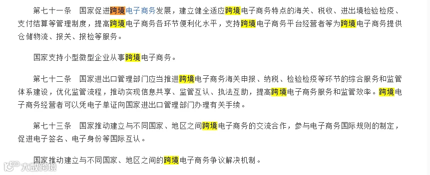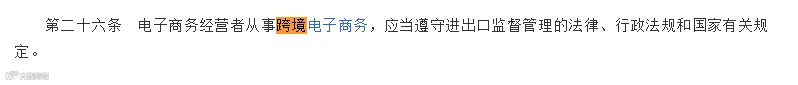 电子商务法有四条法规专门提到了跨境电商。1月1日起,跨境电商交易将全部严格按照国家进出口管理条例,进行检验检疫、纳税、监督。