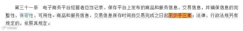 所有网上销售商品都必须依法出具纸质发票或者电子发票!且,自商品交易完成之日起,所有交易信息,必须保存不少于三年;