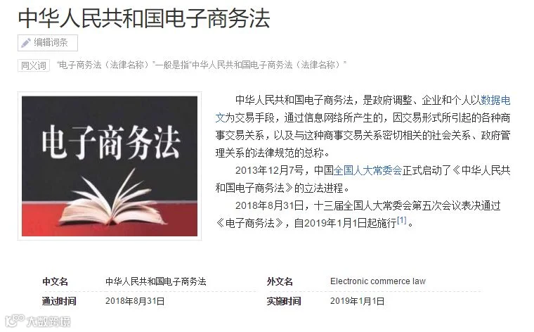 2018年8月31日,十三届全国人大会议,正式表决通过【电子商务法】,自2019年1月1日起施行。