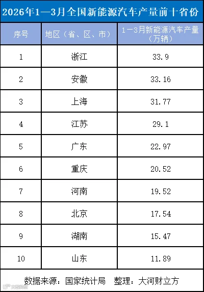 河南新能源汽车产业态势良好,助力全省经济平稳运行。国家统计局数据显示,今年前3个月河南新能源汽车产量达19.52万辆,位列全国第七。