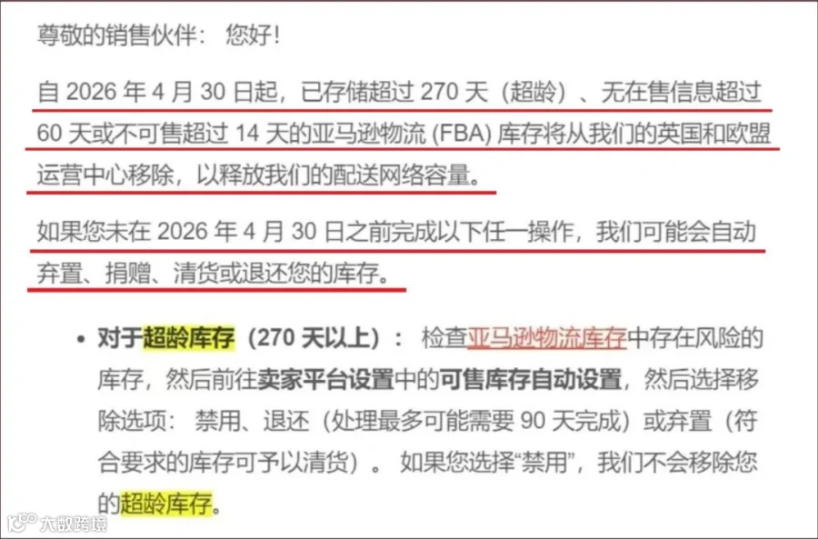 除此之外,还有一个紧急提醒,所有亚马逊欧洲站卖家务必重视!今天是4月29日,明天(4月30日)起,亚马逊欧洲站将强制移除三种类型的FBA库存,未及时处理的卖家,很可能面临库存被弃置、捐赠的风险,具体如下: