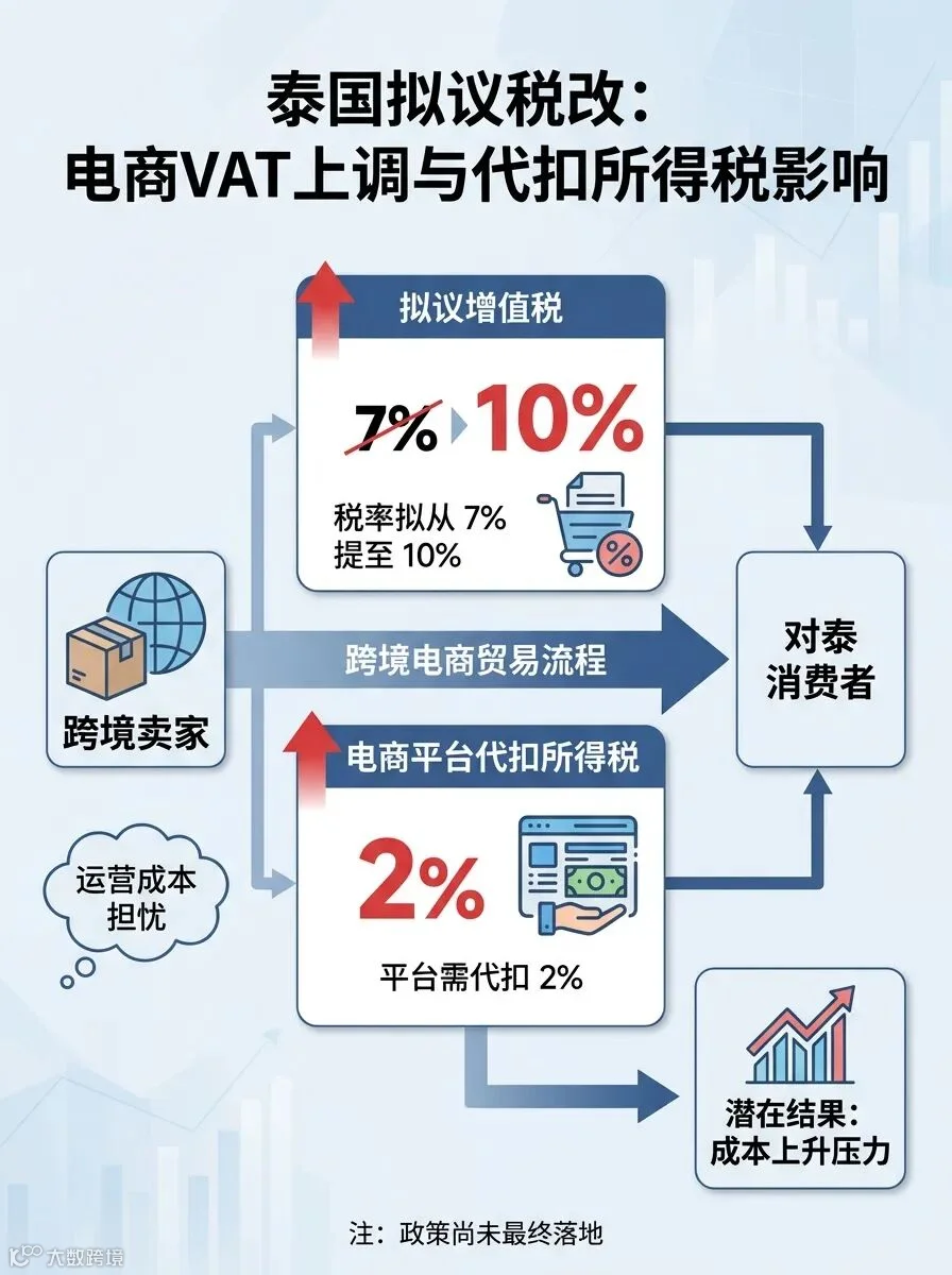 ⚠️ 泰国拟提高VAT至10%,电商平台将代扣所得税