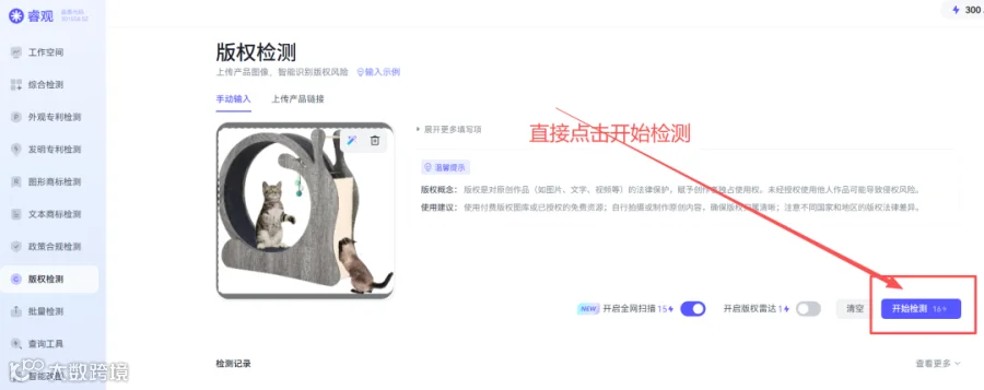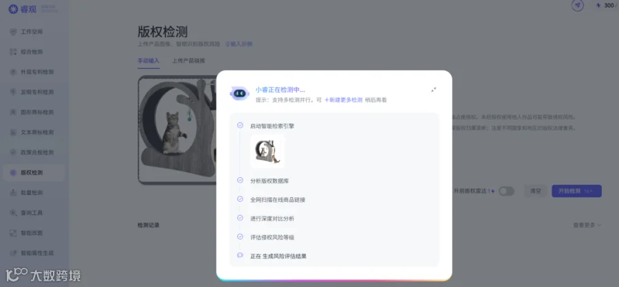 针对上面的问题,睿观AI专门为亚马逊卖家提供了一套版权检测方案。它不需要你懂个那么多操作,只需要上传要检测图案或产品链接就可以了。