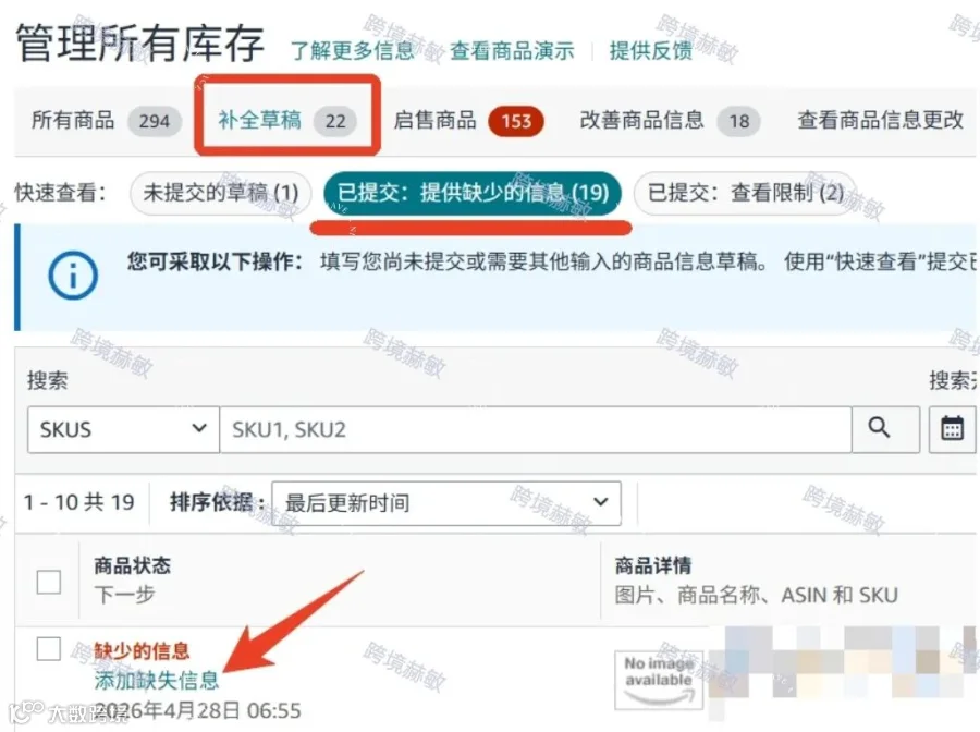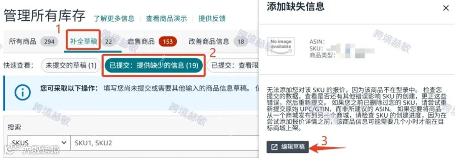 去库存管理-补全草稿-添加缺失信息-listing编辑-反复勾选"此商品没有商品编码"