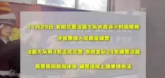 而在当地的交警大队还悬挂着民警收黑钱一律脱警服,辅警收黑钱一律进牢房的标语,但是这种事情还是层出不穷。在这37段视频曝光之后,当地监管部门第一时间就对当地的交警支队进行了查处。在前几天,安阳交警支队发出回声,交警队大队长停职,并开除了十名辅警,进行整顿。