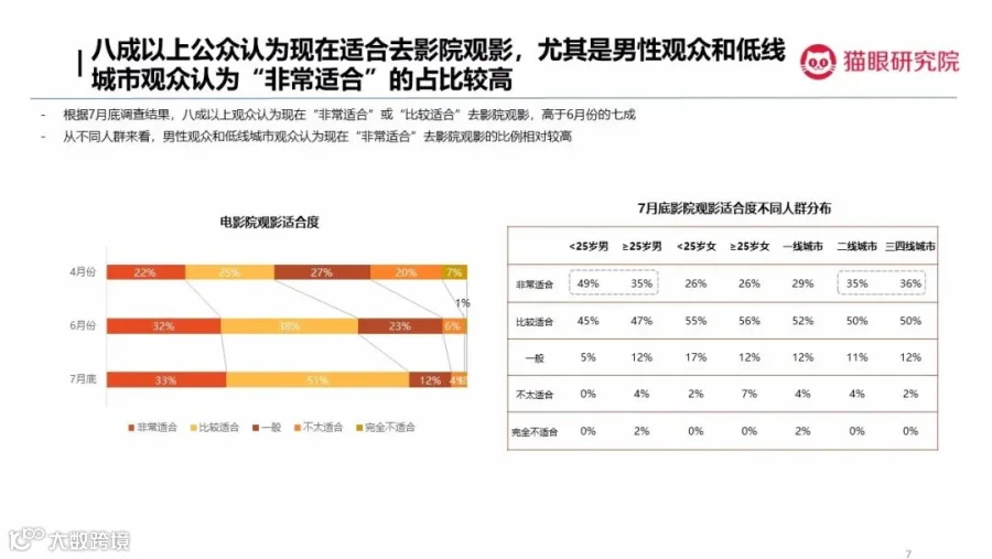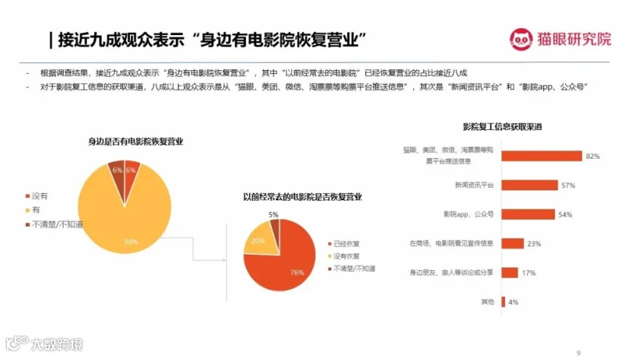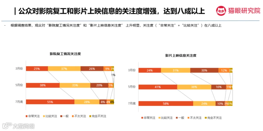 如今,影院需更要重视观众观影意愿变化,及时调整,以更好迎接正在复苏的电影市场。可以预见,随着重量级影片陆续上线,电影行业将迎来更快恢复期。猫眼研究院将继续关注观众消费意愿,与行业伙伴一起助力复工复产,迎接再度繁荣的市场。