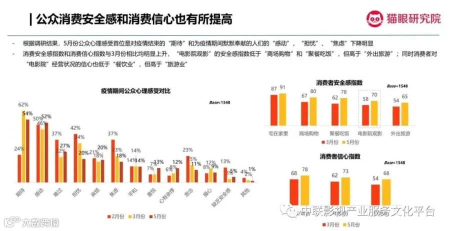随着疫情得以稳定,人们的安全感和消费欲望也有所回升。消费者对看电影的欲望也愈发的强烈,对观影的安全感和经营信心指数也有较大的提升,甚至高于目前的旅游行业。