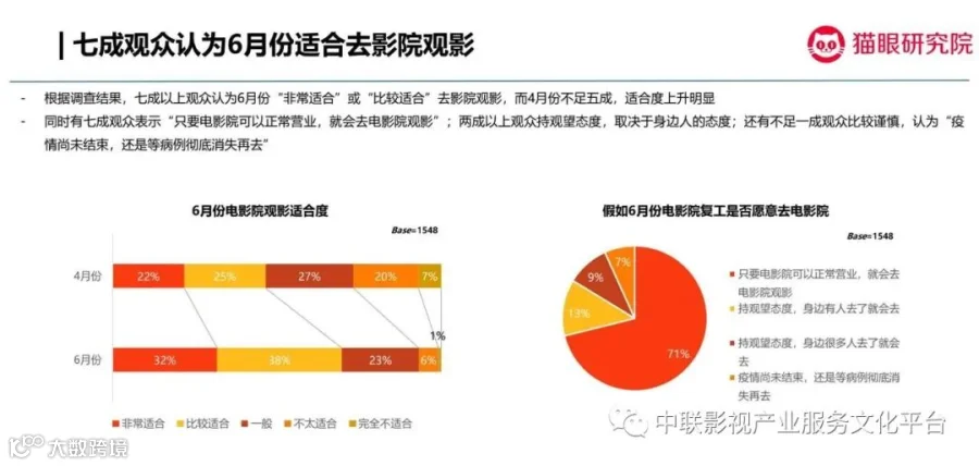 综合报告结果显示,3到5月期间,期待回到影院的观众比例从三月份的七成提升至九成,同时也有很多观众表示看好目前的疫情防控形势,大部分业内从业者预估6月份应该会迎来观众回到影院的热潮。