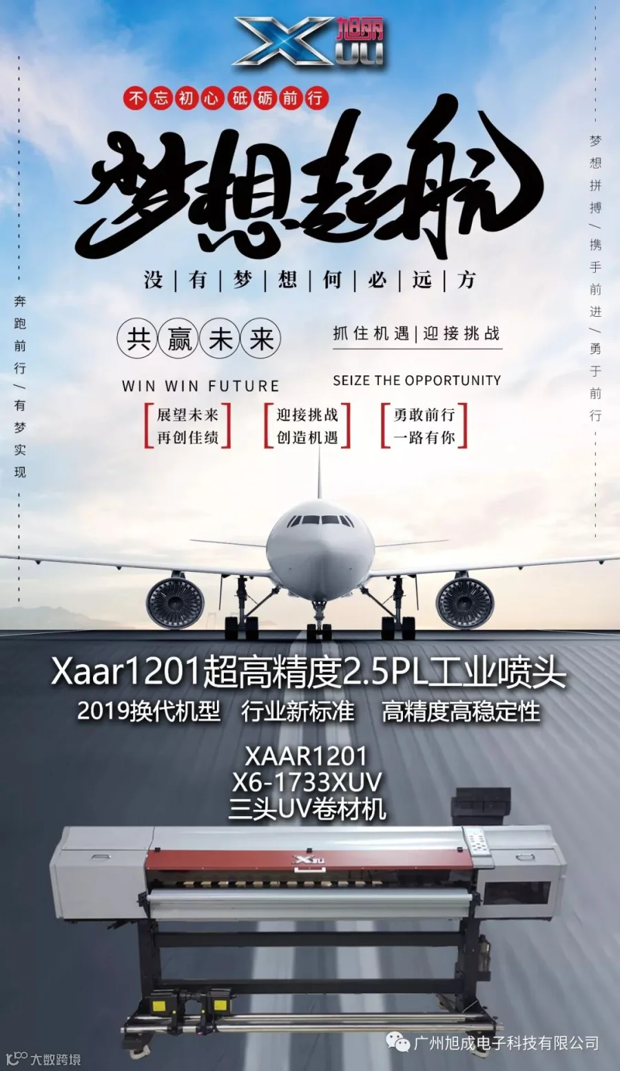 广州旭成一直致力于打印机的研发和应用。主要产品有写真机、喷绘机、数码印花机、UV卷材、UV平板机等,广泛应用于广告标识、数码印染、包装印刷等多个行业。其自主研发的旭丽品牌下的各款打印机设备在全球多个国家及多个行业取得了不凡的口碑,旭丽打印设备以其卓越的性能和超高的稳定性赢得了广大客户的一致认可。为广大客户提供最智能化和最现代化的完整喷印解决方案。