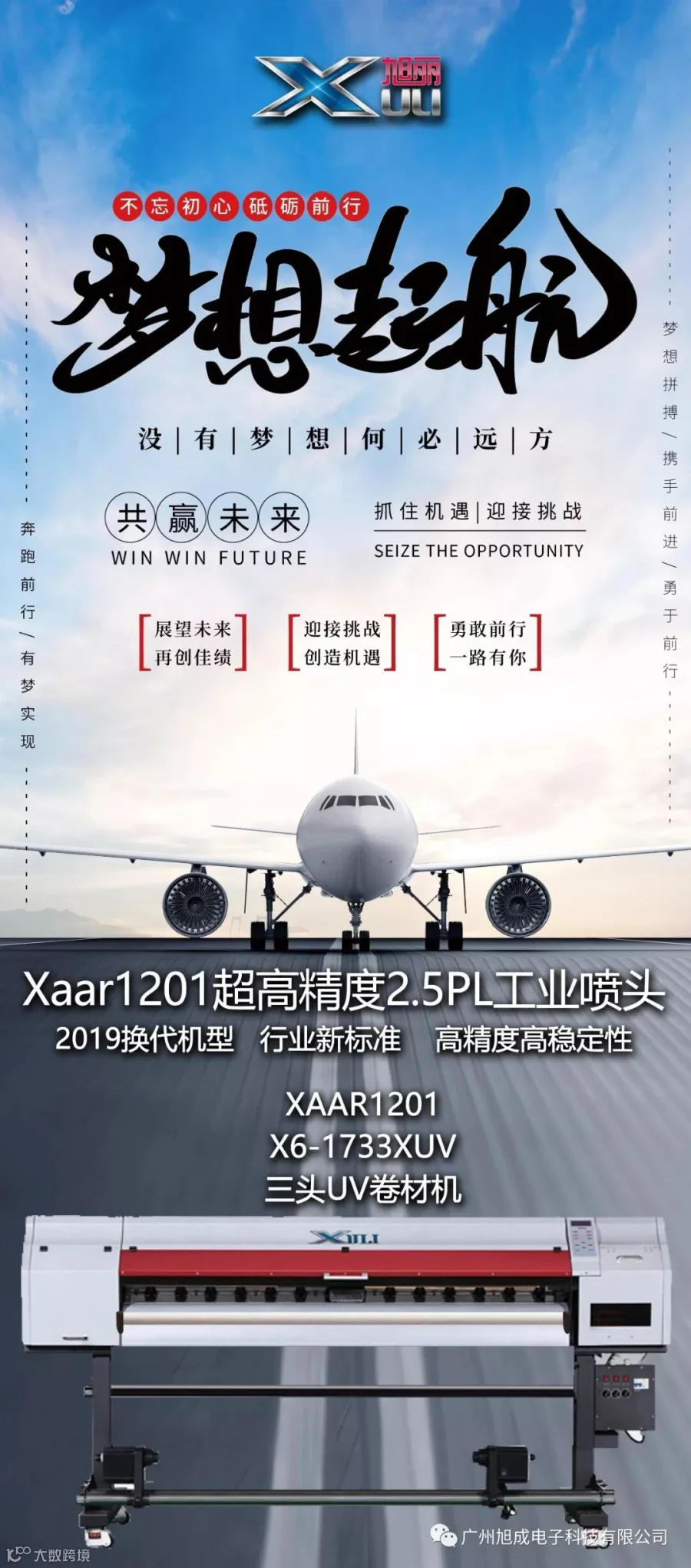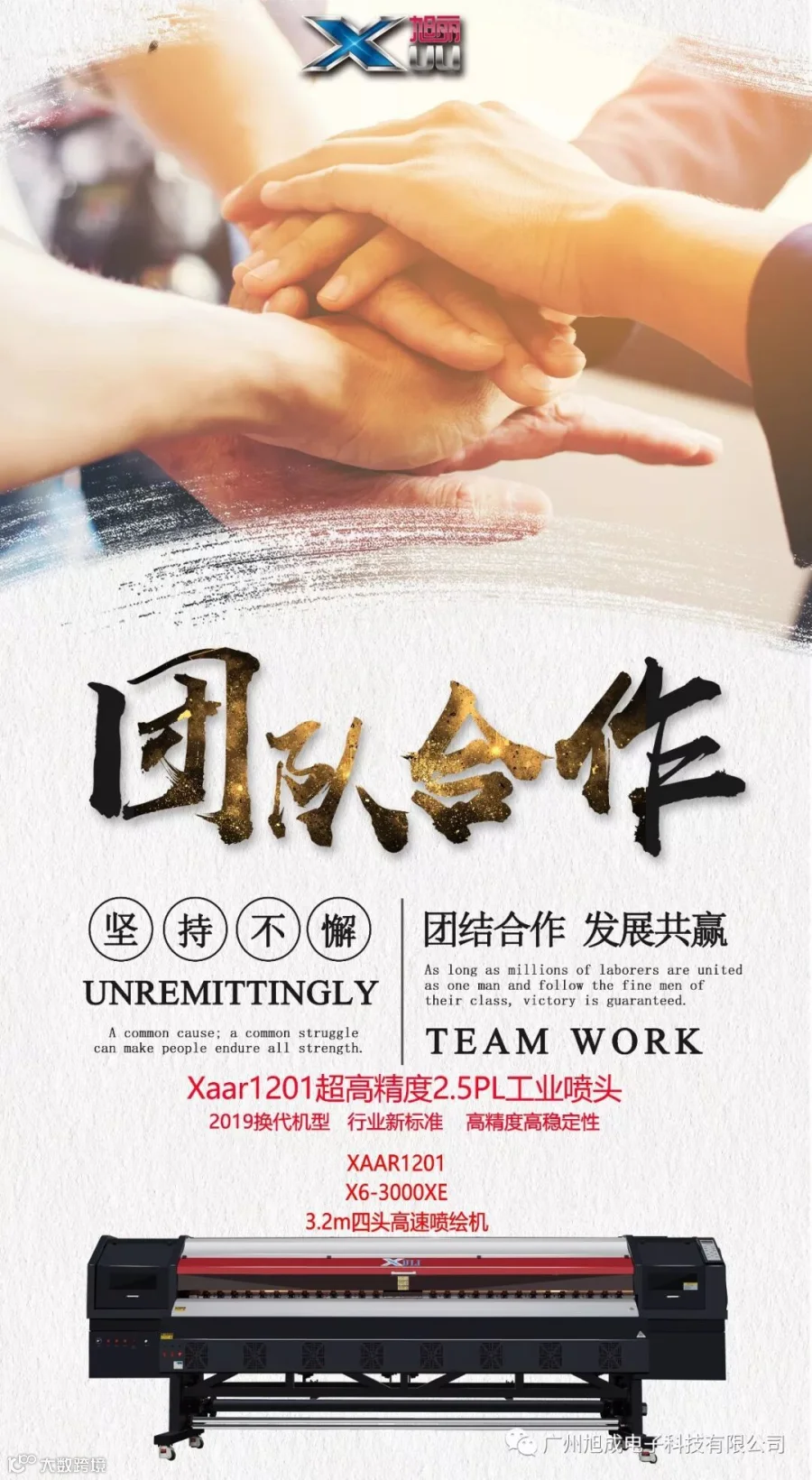 广州旭成一直致力于打印机的研发和应用。主要产品有写真机、喷绘机、数码印花机、UV卷材、UV平板机等,广泛应用于广告标识、数码印染、包装印刷等多个行业。其自主研发的旭丽品牌下的各款打印机设备在全球多个国家及多个行业取得了不凡的口碑,旭丽打印设备以其卓越的性能和超高的稳定性赢得了广大客户的一致认可。为广大客户提供最智能化和最现代化的完整喷印解决方案。