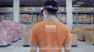 通过AR眼镜可以看到所有快件的信息,仓库商品,质量、体积等相关信息一目了然,还能快速找到对应商品在仓库中所处位置。仓内工作人员可以快速核对入库商品的数量与质量,并做出相应的决策处理。