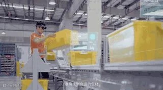 戴着VR智能眼镜后,通过内置麦克风,就能获得货物的位置信息,将货物移动,扫描条形码,并验证货物是否在正确的地方,内置的视觉系统能识别产品和检验挑选出来的货物。工人通过视觉和声音引导,将货物放到正确的位置,直到整批处理命令的完成,系统更新订单和库存状态。