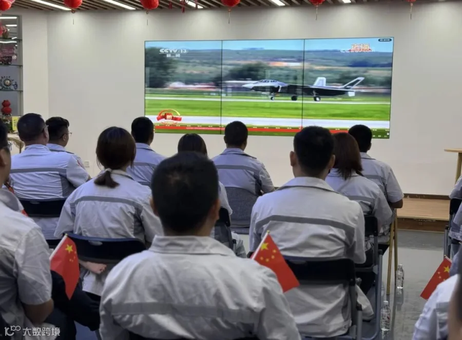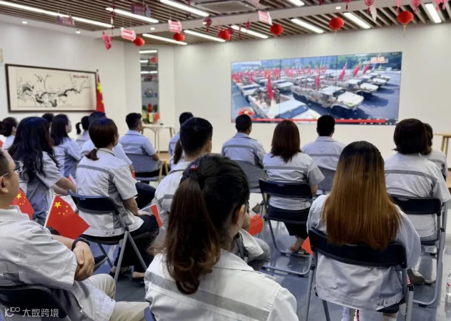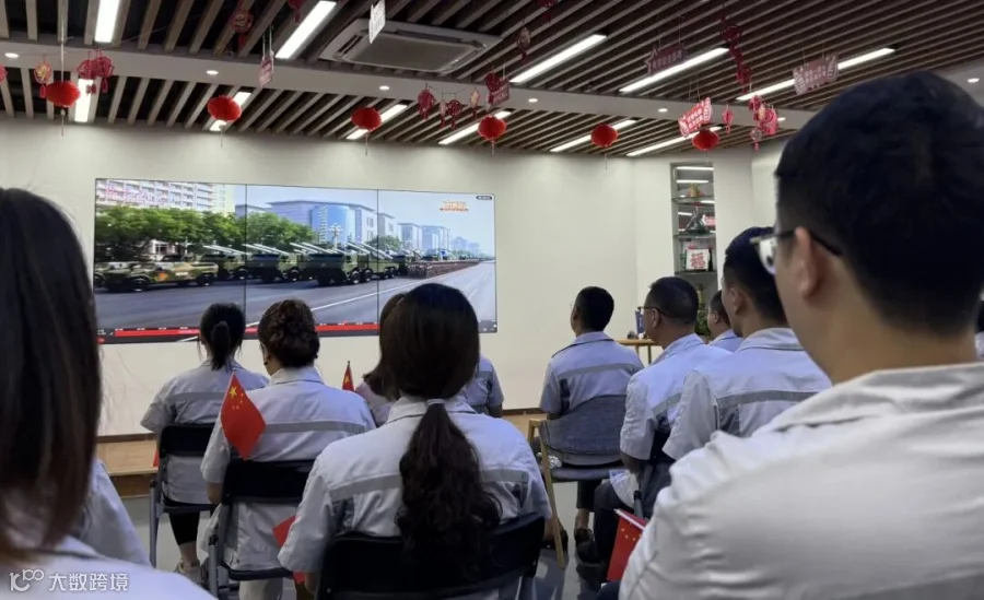活动当日,整体氛围庄重而肃穆,高清大屏提前调试就绪,员工们怀着崇敬与期待的心情提前入场就座。上午十时许,阅兵仪式正式拉开帷幕,踏地有声的铿锵步伐,气势恢宏的庄严装备,意气风发的精神风貌、直击人心的仪式场景,一幕幕画面既让在场员工深刻体悟到国家实力的强劲脉动与民族精神的昂扬姿态,更在思想层面引发深度共鸣。这场沉浸式体验不仅是一次触动灵魂的爱国主义教育,更成为企业文化注入家国情怀、实现精神赋能的鲜活范例!