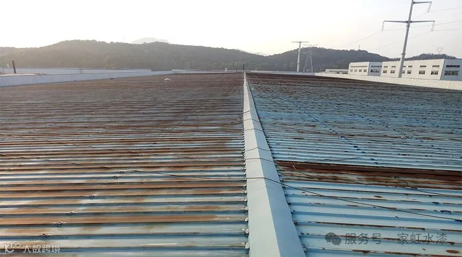 🏷️【小贴士】选择家虹环保型水性漆可减少异味,施工更安全!若彩钢瓦变形严重(凹陷>5cm),建议局部更换后再使用家虹翻新漆翻新。