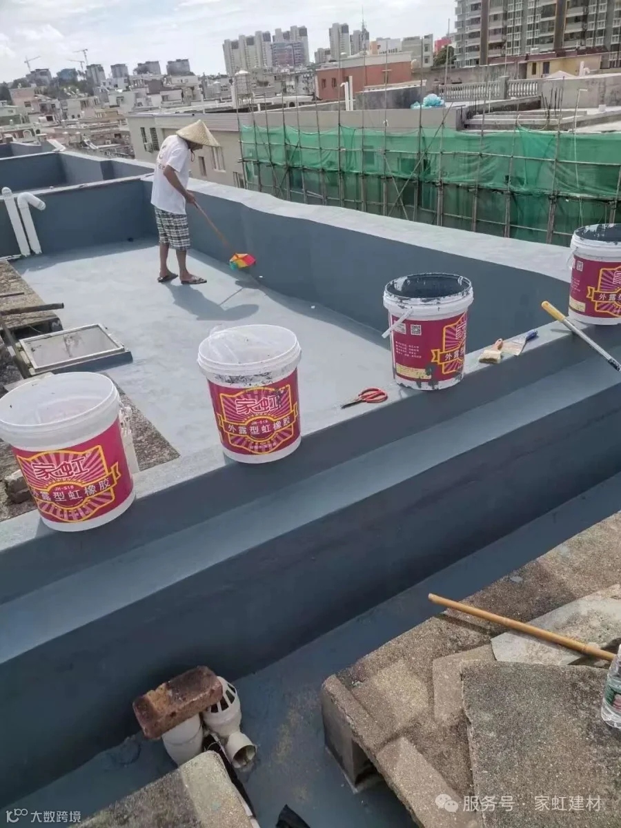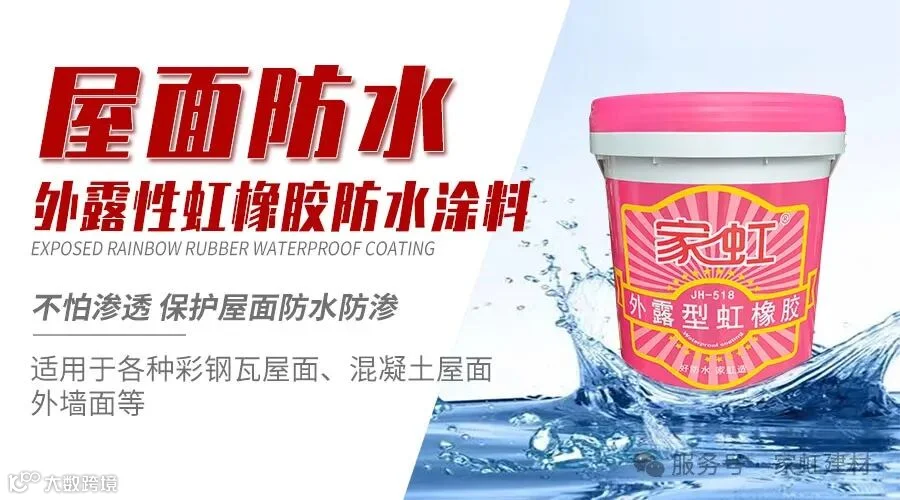 家虹外露型虹橡胶防水涂料是属于环保型高分子聚合物弹性防水材料,产品无毒无味,具有良好的粘结性和不透水性,对砂浆水泥基、石面和石材,金属制品都有很强的粘附力,产品的性能稳定,能长期经受日光的照射,耐老化性能优异,涂膜强度高,弹性好,防水效果极佳。