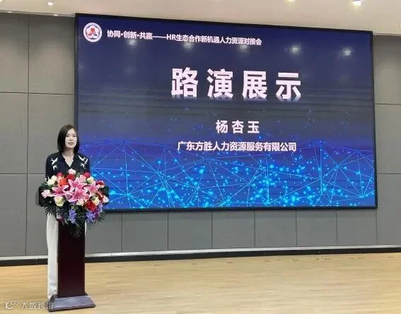 FESCO广东方胜人事外包事业部总监 杨杏玉代表公司受邀出席本次活动,并且分享了广东方胜关于人力资源不同产品的整体解决方案,并表示希望与各方开放合作,共赢未来。