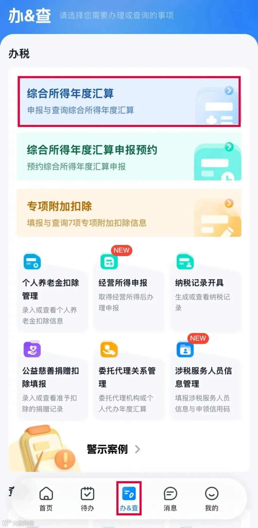■入口二:办&查【综合所得年度汇算】-【申报年度2025】-【开始申报】进入