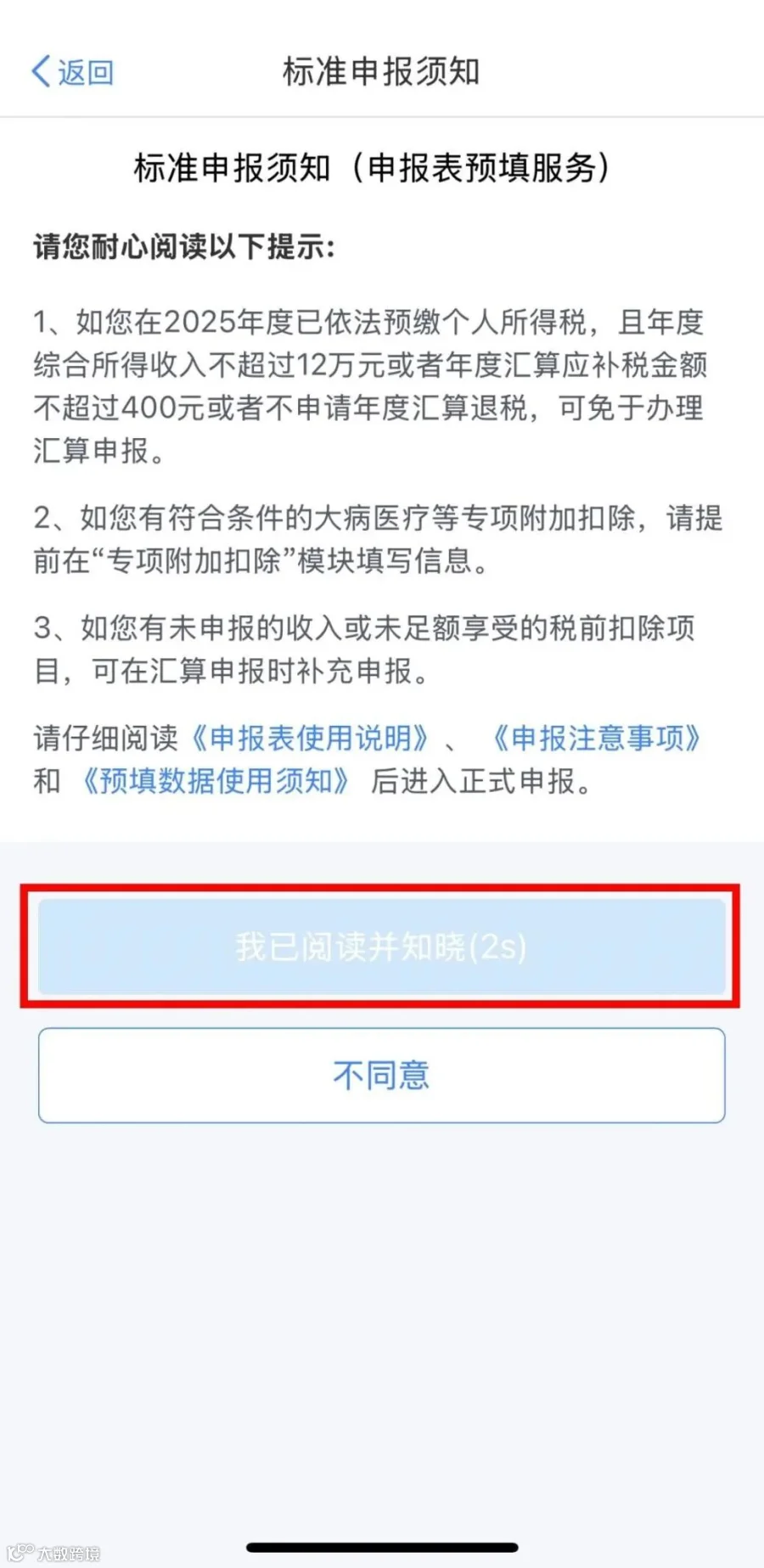 选择申报年度为【2025年度】,点击【开始申报】,阅读并点击【我已阅读并知晓】