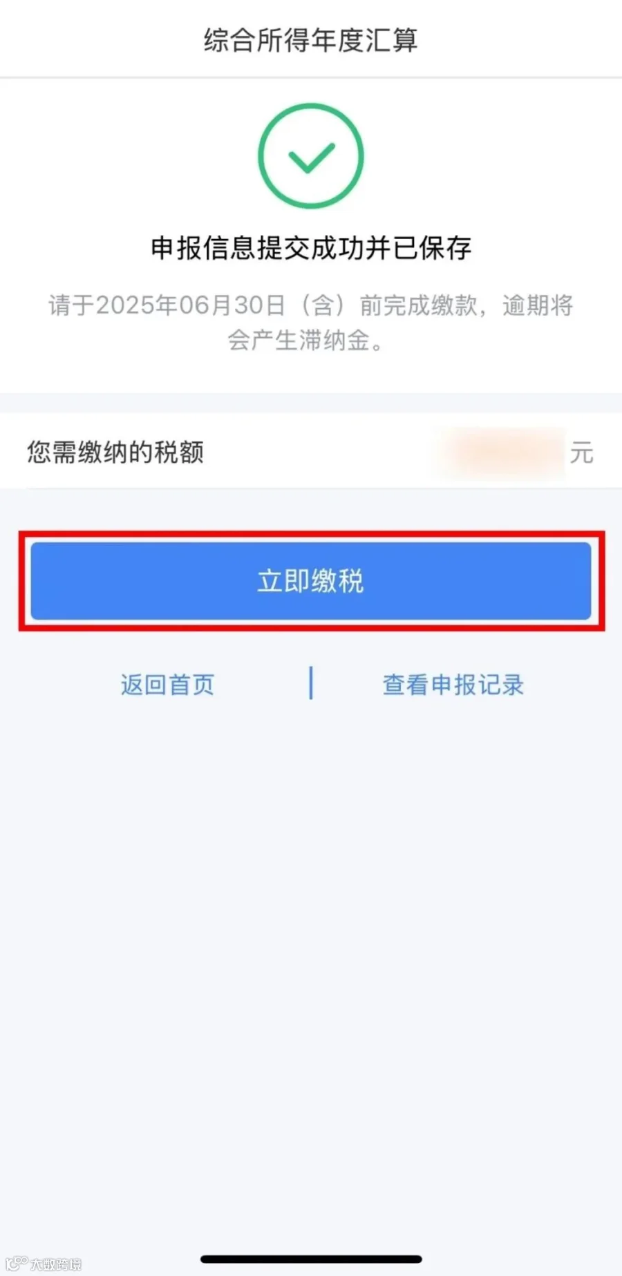 若您存在应补税额但不符合免于申报条件,请点击【立即缴税】进入缴税页面。