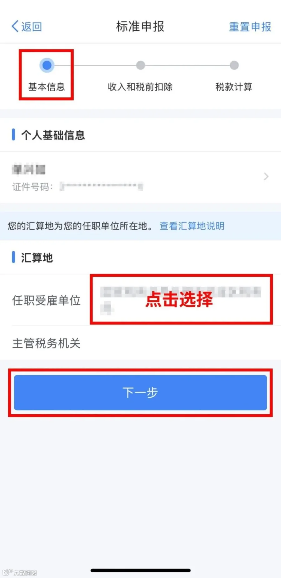 核对【个人基础信息】,选择或确认【任职受雇单位】,点击【下一步】,如有多个任职受雇单位,需选择其中一个作为汇缴地。