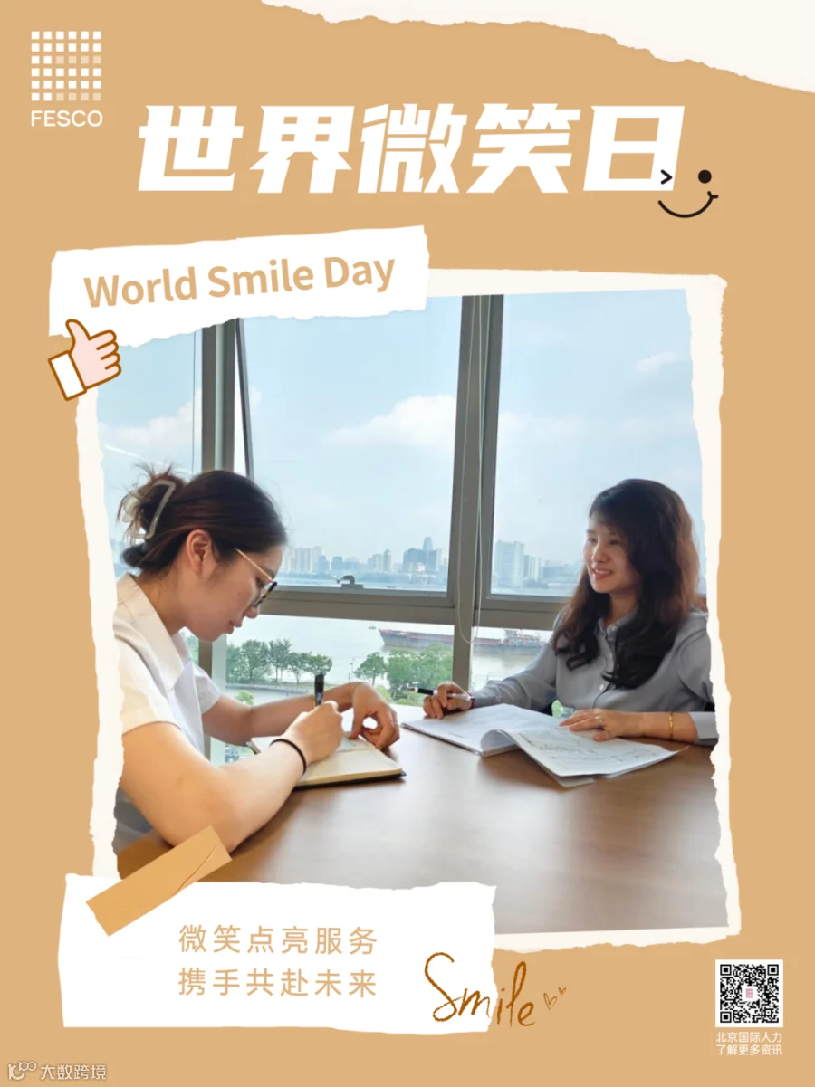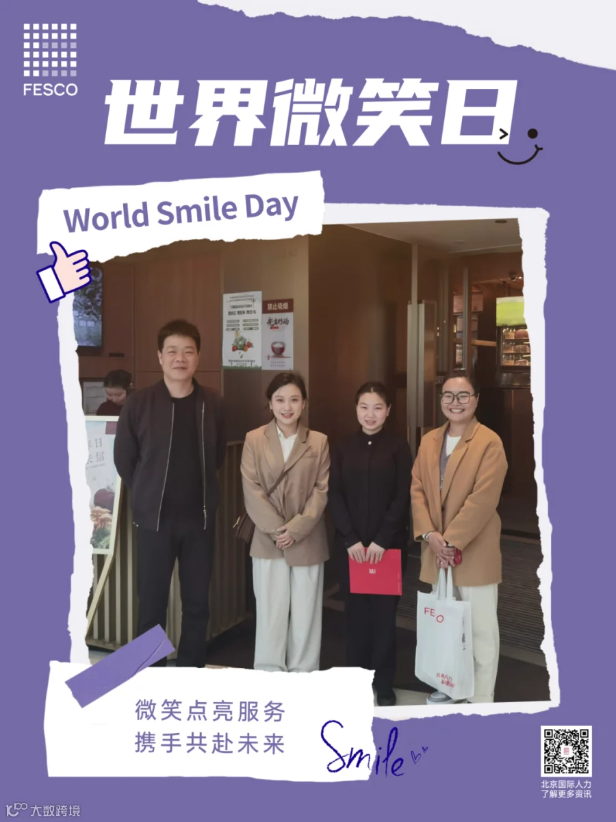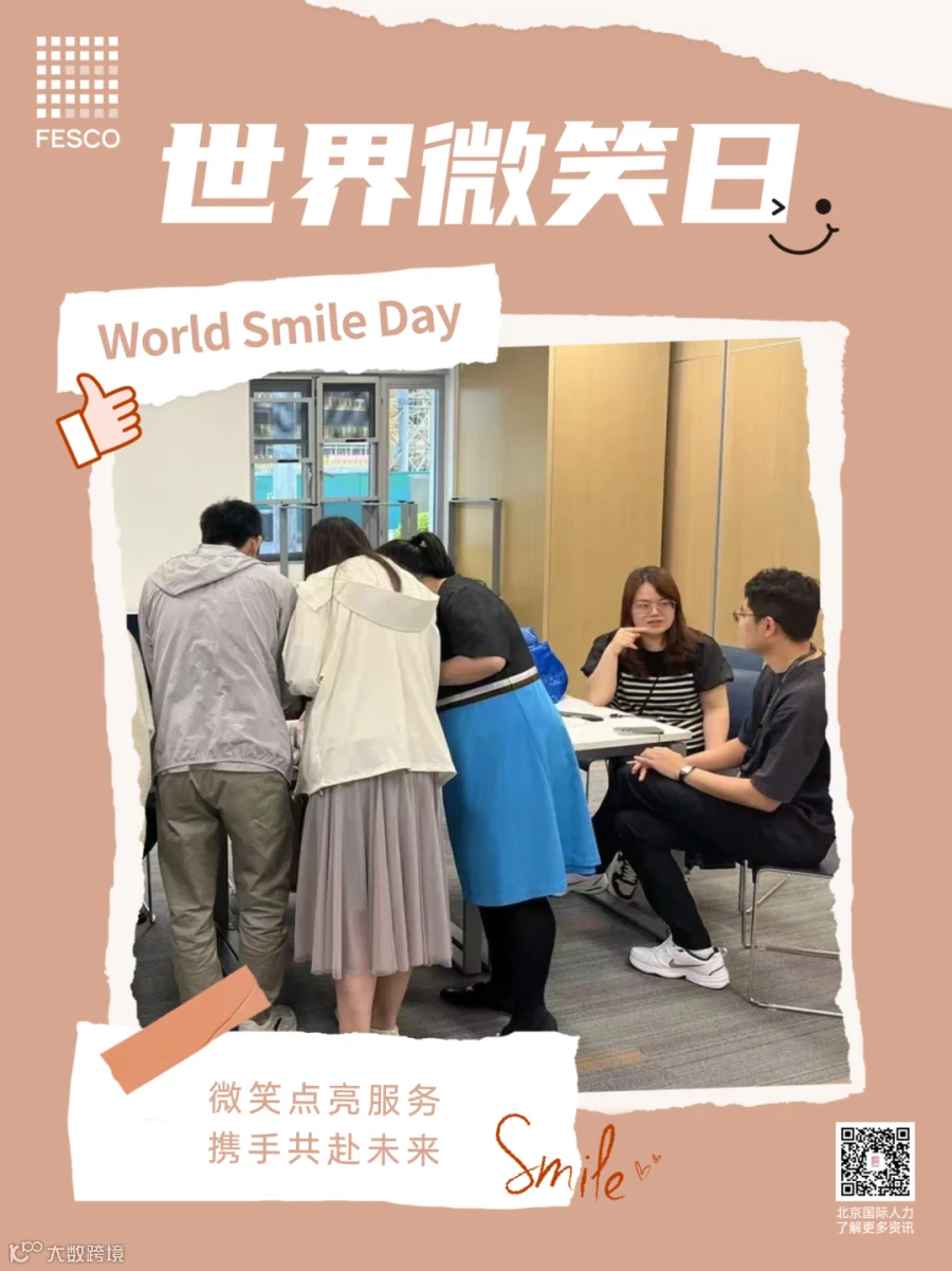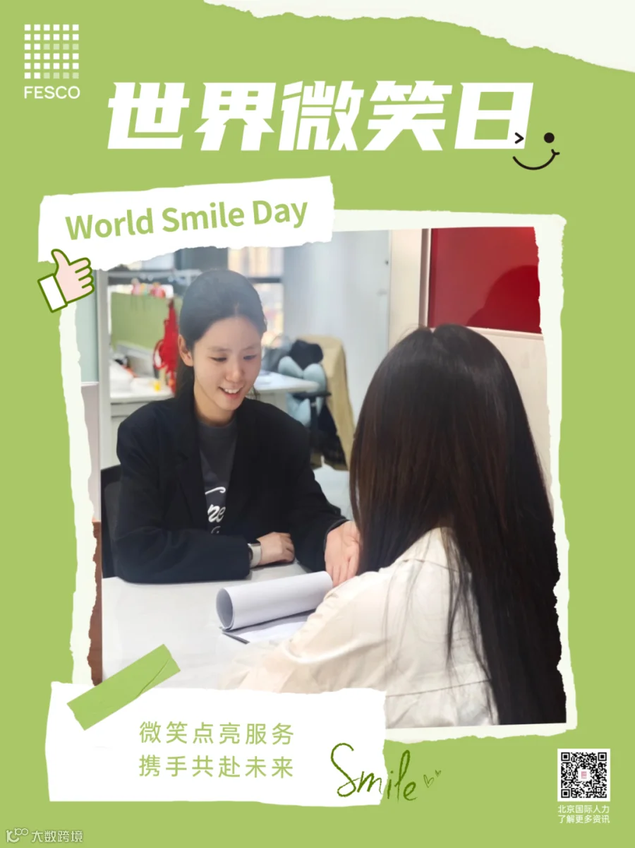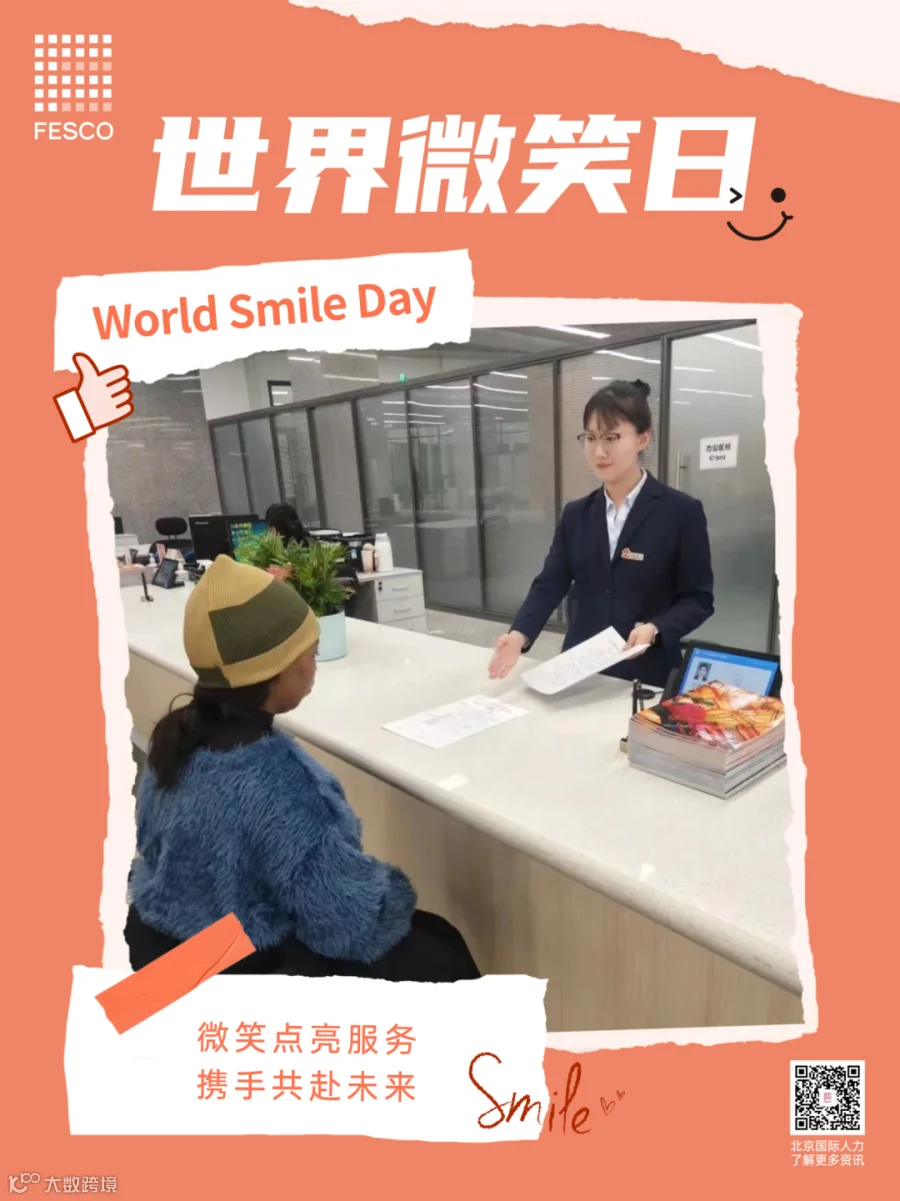 今日是第77个世界微笑日。微笑,是我们最温暖、最动人的语言,它跨越种族、文化和语言的障碍,传递着善意与美好。在这个特别的日子里,北京国际人力资本集团股份有限公司(简称:北京国际人力,品牌:FESCO)以微笑服务为笔,绘就一幅幅温暖人心的服务画卷,用实际行动诠释着对微笑服务的深刻理解和不懈追求。
