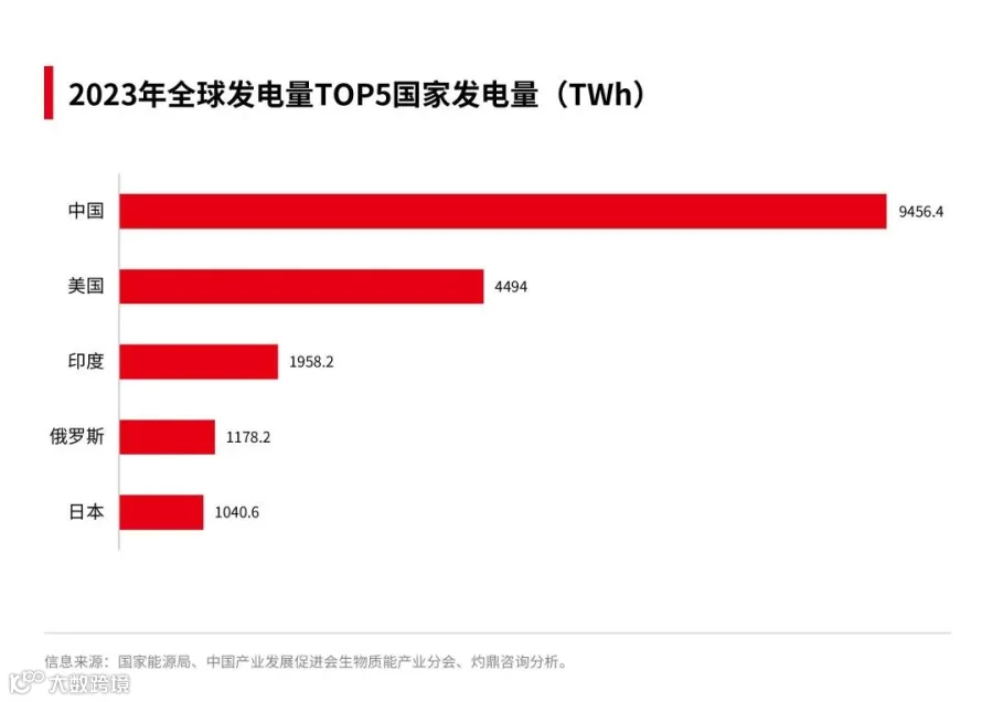 中国是能源消耗大国,发电量居世界前列。2023年,全球发电量达到了创纪录的29924.8TWh,同比增长2.5%。其中,中国的发电量达9456.4TWh,同比增长6.9%,占全球的31.6%。