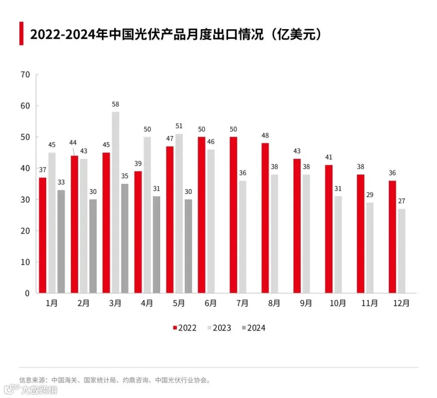 2024年1-6月份我国光伏主材累计实现出口额186.7亿美元,同比去年同期的289亿美元,下降35.40%,持续“价减量增”的态势。