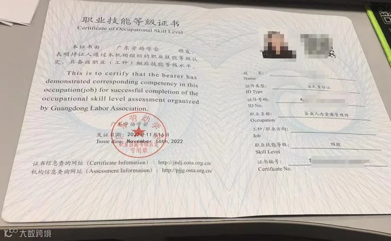 2019年12月30日国务院发文称,2020年将分步有序地将水平评价类技能人员职业资格全部退出国家职业资格目录,不再由政府或其授权的单位认定发证,也就是说在2020年企业人力资源管理师就已经取消政府发证国考了,因为口罩原因省考延续到了2020年底,所以从2021年起全国基本上就正式改由第三方评价机构发证,证书变成了职业技能等级证书。企业人力资源管理师职业技能等级新版证书样本如下: