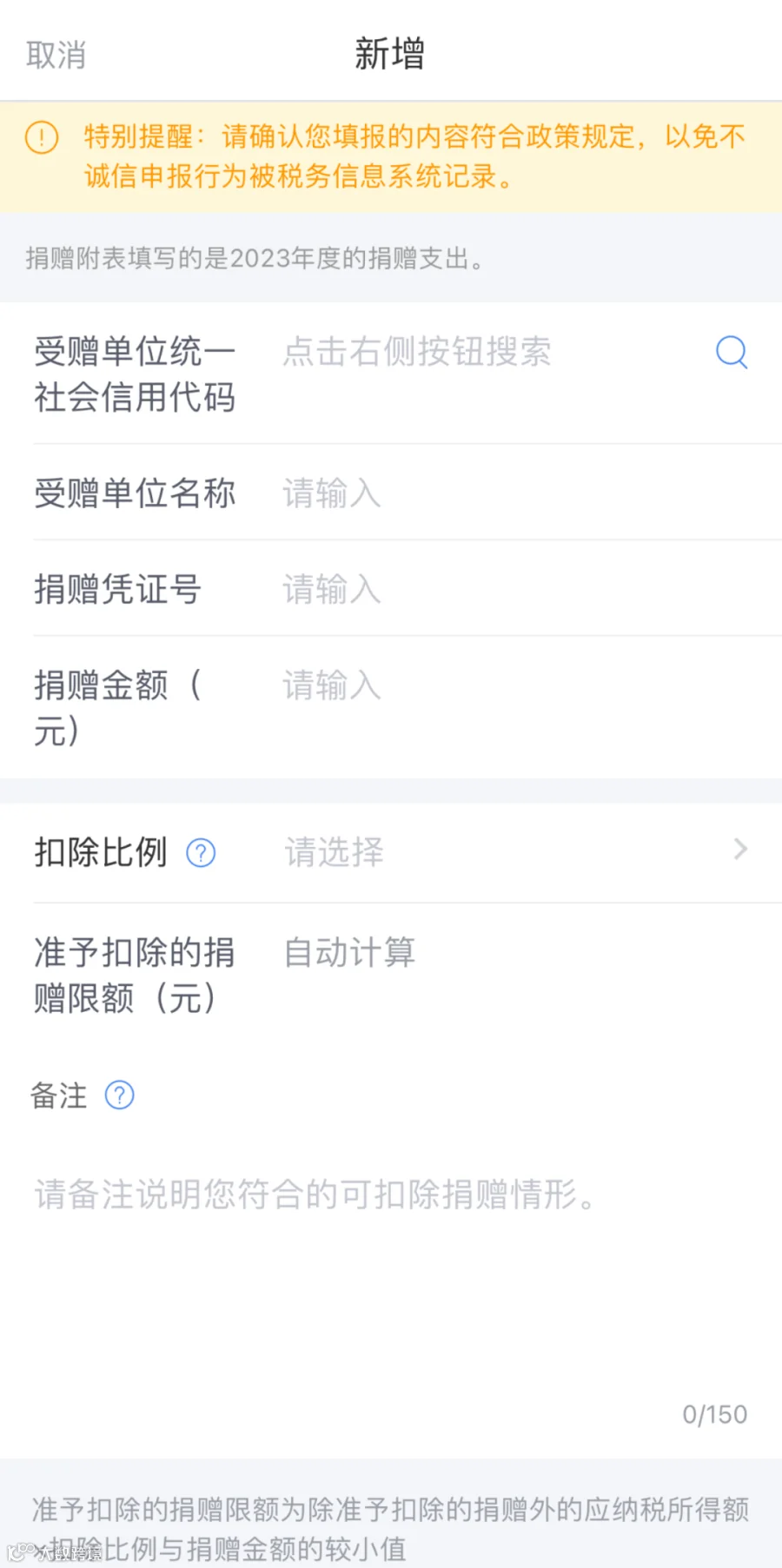 纳税人请注意,扣除比例需要据实填写。