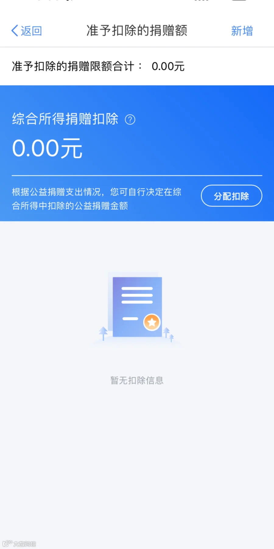 您需要准备好基金会开具的捐赠票据,登录个人所得税app,在“首页”中点击“综合所得年度汇算”,在标准申报页面下方找到“准予扣除的捐赠额”。然后,点击右上角“新增”。
