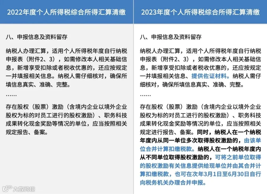 第八条“申报信息及资料留存”部分,根据《财政部 税务总局关于延续实施上市公司股权激励有关个人所得税政策的公告》(2023年第25号)的有关规定,股权激励单独计税政策延期至2027年底。纳税人一个纳税年度内取得两次以上(含两次)股权激励的,应合并计算纳税,本着便利纳税人操作的原则,《公告》对纳税人取得两次以上股权激励的情形,进一步明确了多次股权激励合并申报的方式、时间和地点。