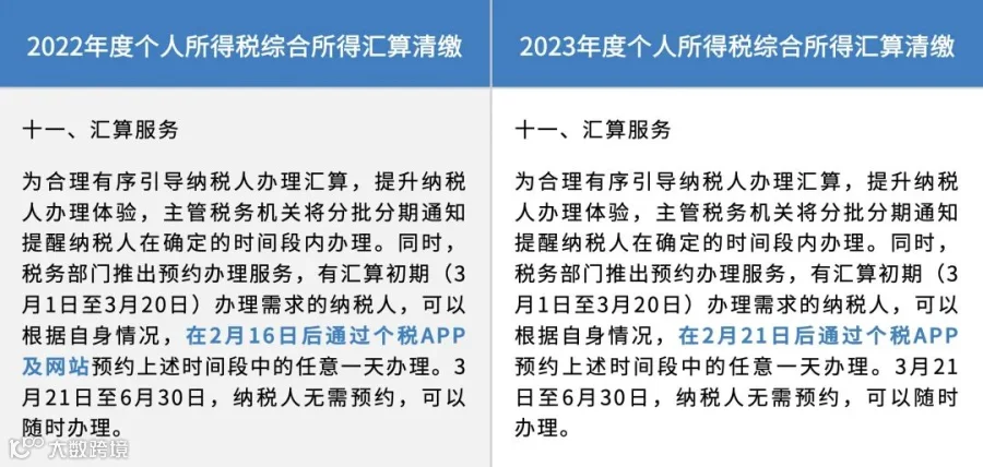 第十一条“汇算服务”部分,进一步完善了预约办税制度。考虑到今年春节假期较晚,将汇算预约办税起始时间调整为2月21日。