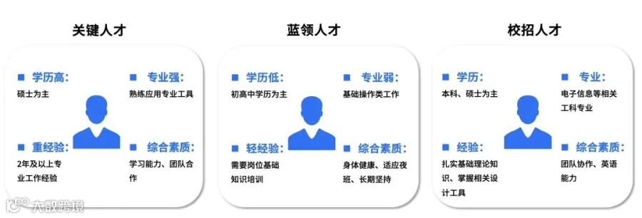 根据各招聘网站相关岗位职责及任职要求整理,不同类型的行业人才,其人才画像可总结如下: