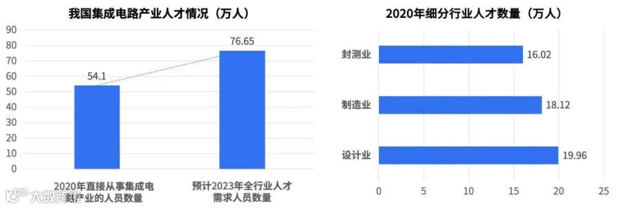 2020年我国直接从事集成电路产业的人员约54.1万人,同比增长5.7%,预计到2023年前后,全行业人才需求将达到76.65万人左右,总体来看,集成电路行业人才或存在20多万的缺口。