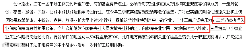 4月6日召开的国务院常务会议,决定对特困行业实行阶段性缓缴养老保险费政策,加大失业保险支持稳岗和培训力度;部署适时运用货币政策工具,更加有效支持实体经济发展。