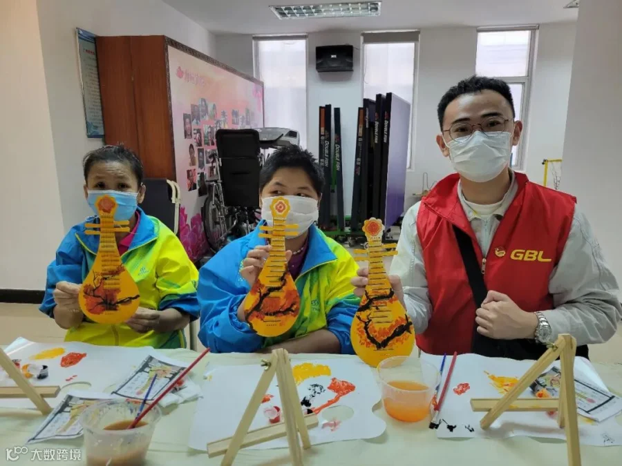 广州广汽商贸物流有限公司团委通过前期的沟通了解到工疗站残障学员正在进行康复阶段,因此为他们准备了琵琶DIY手工,帮助残障员工提高对自我的认同感,增强其自信心,同时发掘残疾人自身动手能力,提升自我价值感,鼓励残疾人积极参与社会生活,从而感受到社会对他们的关爱。