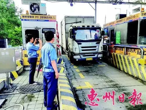 今年4月20日,惠州市启动高速公路治超非现场执法。全市55个高速公路收费站的收费通道(ETC通道除外)都安装了电子称重系统、监控系统、高清车牌识别系统等设施设备,收集涉嫌超限超载车辆的原始数据及信息(包括车型、车牌、称重信息、车辆照片、视频资料等)。