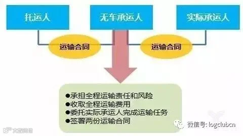 无车承运人是无船承运人概念在陆地上的延伸。(无船承运人居于货主企业与船公司之间,为货主企业进行运输的组织优化,为船公司揽收充足货源,提高海运效率、降低交易成本。无船承运人承担全程运输责任。)